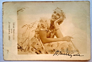 Pastkarte, kas veltīta 1939. gada latviešu filmai "Zvejnieka dēls". Ar autogrāfu.