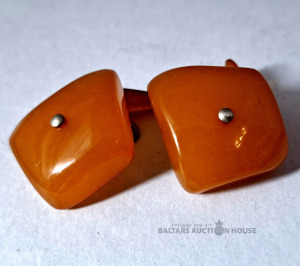 Dzintara aproču pogas. Latvija. Kopējais svars: 9 grami. Metāls.