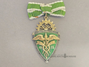 žetons, Valsts statistikas pārvalde, sudrabs, emalja, Latvija, 1935 g., 43.6 x 26.8 mm, 10.55 g, 875 prove