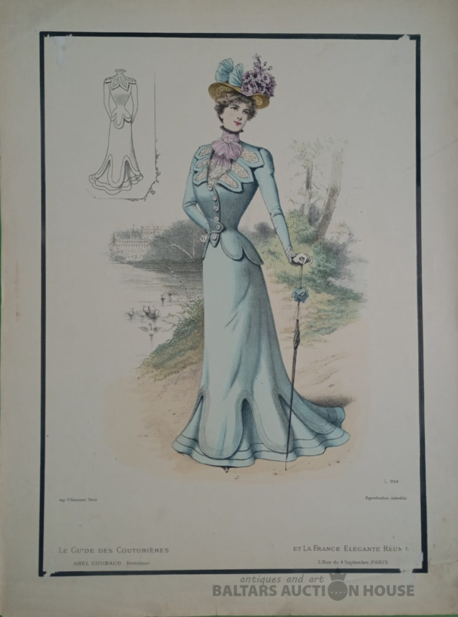 Franču modes ilustrācija no 19. gadsimta , Franču modes ilustrācija no 19. gadsimta beigām, franču skolas darbs, Franču modes ilustrācija no 19. gadsimta beigām, franču skolas darbs