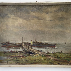 Glezna “Laivas”. Jānis Lauva (1906 – 1986), 1970.gads. Izmēri: 50x 66,5 cm.