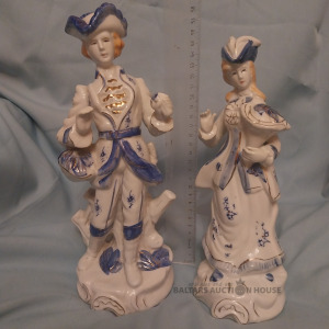 Divas garas porcelāna figūras. H: Džentlmenis ~28.5 cm.,Dāma ~ 26.5 cm. Eiropa. 20 gs. beigās.