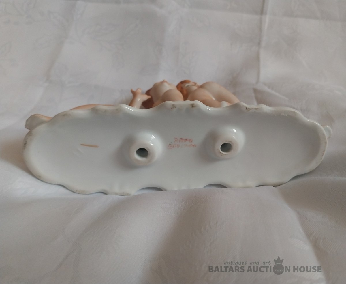 Porcelāna figūra "Divas kailas dāmas" 20 gs. Vidus. H 14 cm × 22 cm.