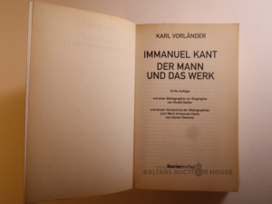 Karl Vorlander ''Imanuel Kant, der Mann und das Werk'', 1992. gads. Grāmata lieliskā stāvoklī.