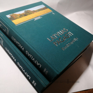 “Latvijas pagasti (Latvijas pagasti, novadi, pilsētu un novadu lauku teritorijas), Enciklopēdija, I (A-L) un II (M-Ž) sējumsi, Preses nams, 2001., 648+728 lpp., Fundamentāls izdevums ar visu Latvijas pagastu aprakstiem, krāsainām kartoshēmām un fotogrāfijām. Sniegtas ziņas par pagastu teritoriju, dabu, iedzīvotājiem, saimniecību, izglītību un kultūru, veselības aprūpi, reliģiju, kultūras un dabas pieminekļiem, ievērojamākajām personībām. Pirmā sējuma vairākas lappuses pašā apakšā tikušas pie mitrums, teksts nekur nav skarts.