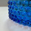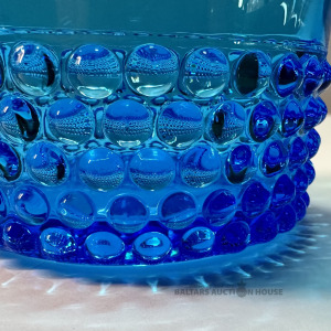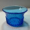 Dizaina stikla trauks, piesātinātas krāsas zils stikls, gaismu lauzošie puslodīšu elementi, diametrs 15 cm.