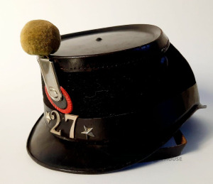 Šako, Šveices armijas virsnieks Pirmā pasaules kara laikā., Šveices armijas virsnieka ķivere no Pirmā pasaules kara – oriģināla. Materiāls: āda, filcs, papīrs un misiņš. Uz šīs Šveices armijas ķiveres no Pirmā pasaules kara ir visas pareizās kokardes un emblēmas.Tā ir izgatavota no presēta filca ar ādas apvalku, tai ir melnas ādas priekšējais un aizmugurējais vizieris, kā arī melna ādas apdare. Kokardes apmale ir Bernes raksta. Fotoattēlā viss attēlo ķiveri tādā stāvoklī, kādā tā ir.