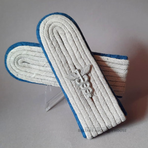 | Nosaukums | Vērmahta plecu siksnu pāris "apgādes virsnieka leitnantam" ar rudzupuķu ziliem Waffenfarbs un Merkura zizli, ideālā stāvoklī. |