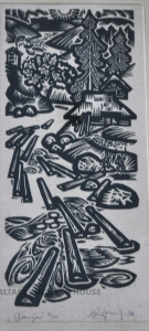 "Gauja" Linogriezums. 2/100 Autora paraksts. Rāmis/Stikls. 34x56 cm