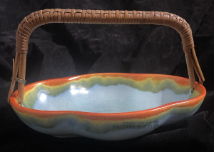 Saldumu trauks, keramika, glazūra, h=4,5 cm, 13,7x21 cm, Kuzņecova f-ka, Ulmaņlaiki