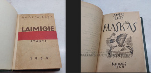 Ādolf Erss — LAIMĪGIE (vāku zīm. Strunke), 1933. g. + MASKAS, 1920. g.(vāku zīm. Tone) + erotisks ex-libris. AVANGARDS