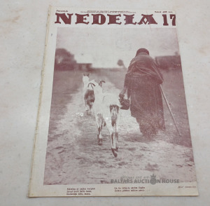 jaunā NEDĒĻA 1927/17. Saturā bildes no Rīgas telefoncentrāles (darbinieki u.c.) Pirmajā lapā foto – Niklāva Strunkes kunde Olga ar dēlu. Saturisks ieskats bildēs