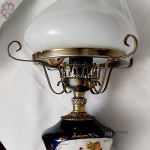 Porcelāna uzkārama pie griestiem ar ķēdi vintage lampa perfekta stāvoklī. Fragonard. Cobalt Blue krāsā. Balts plafons.
