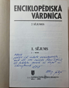 Enciklopēdiskā vārdnīca 1.sējums. Izdota "Latvijas enciklopēdiju redakcija" 1991.g.