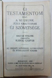 Jaunā derība Ungāru valodā. Izdota Budapeštā 1936.g