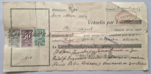 Antīka Latvijas īstermiņa parādzīme no 1935. gada. Šis ir finanšu dokuments 175 Latvijas latu vērtībā, kas izdots Rīgā. Parādzīmē ir ar roku rakstīta informācija par aizņēmēju, aizdevēju (Rīgas Savstarpējo kredītsabiedrību) un atmaksas noteikumiem. Dokuments ir dzēsts ar zīmogmarkām 20, 50 santīmu un 5 latu nominālvērtībās.