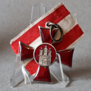 Hamburgas pilsētas Hanzas krusts. Tirāža: aptuveni 120 000 eksemplāru. Hamburgas pilsētas Hanzas krusts par nopelniem 1914.–1918. gada karā. Lentes garums: 5 cm.