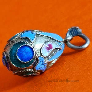 Lieldienu olu kulons, 84 karātu sudrabs, Krievijas impērija. Ceturtdaļīga emalja. Svars: 1,55 grami.