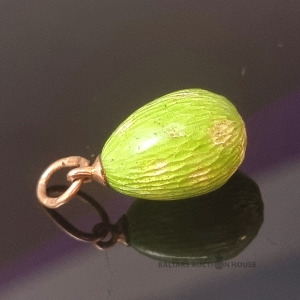 | Nosaukums | Lieldienu olas kulons. PSRS. Zaļa giloša emalja. Svars: 3,32 grami. 583. zelta prove. Otrā prove nav salasāma. Stāvoklis: Skatīt fotoattēlu; emaljas |