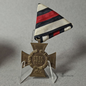 "Pirmā pasaules kara Hindenburga Goda krusts 1914.–1918. gadā" ar zobeniem. Apbalvojuma sākotnējais nosaukums vācu valodā ir "Pirmā pasaules kara Hindenburga krusts 1914./1918. gadā". Vācija. Trešā reiha periods (1933.–1945. gads). Vācu ražotājs., Eiropas tipa, trīsstūrveida forma, plata josla.
