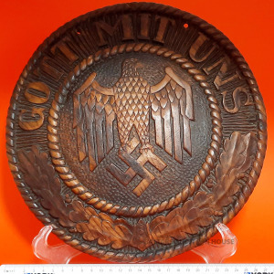 SIENAS DEKORS AR DEVĪZI. Koks. ****Gott mit uns*** DIEVS ir ar mums****Kara veterāna piemiņai. Koks. Diametrs. 27 cm.