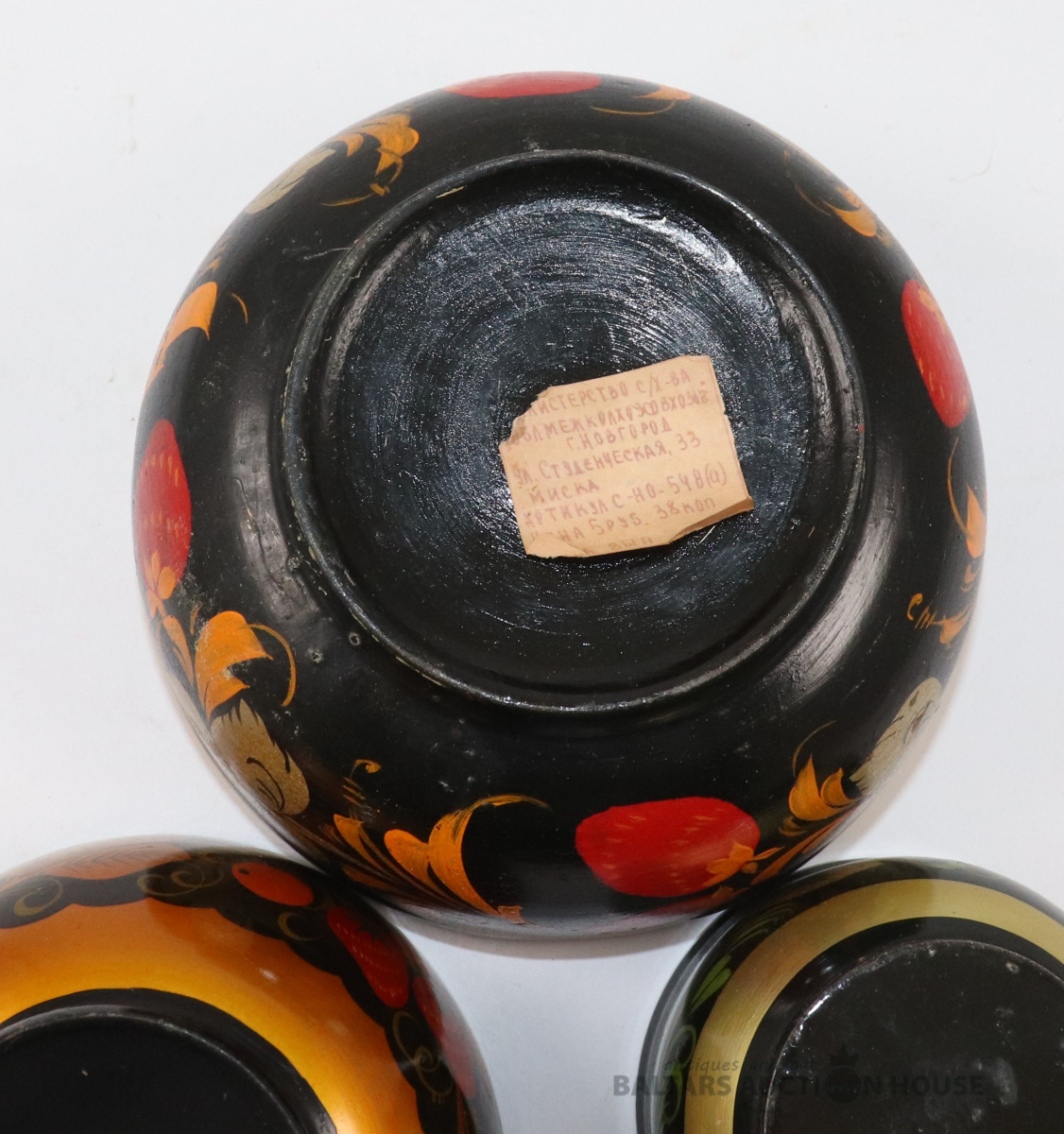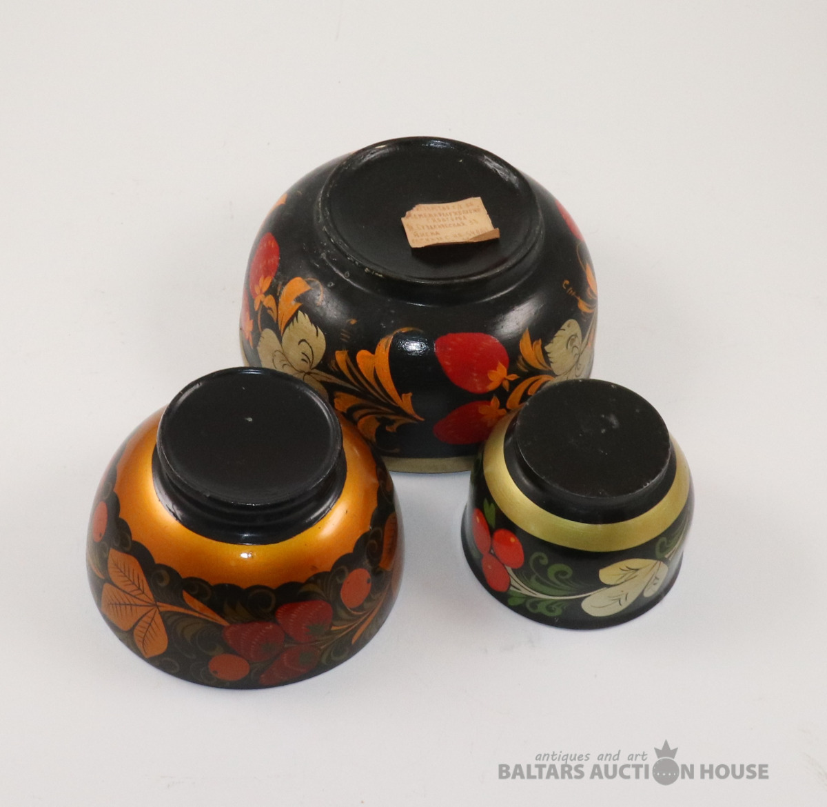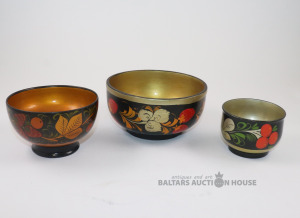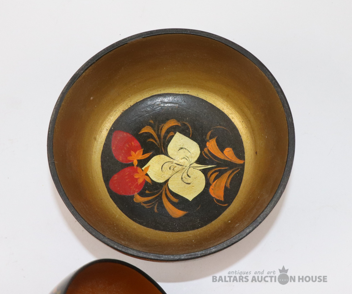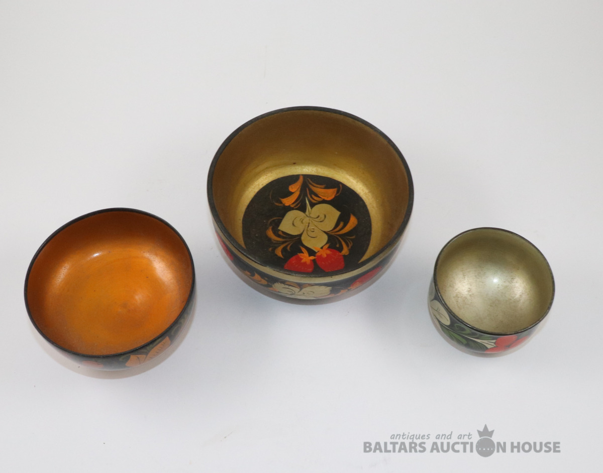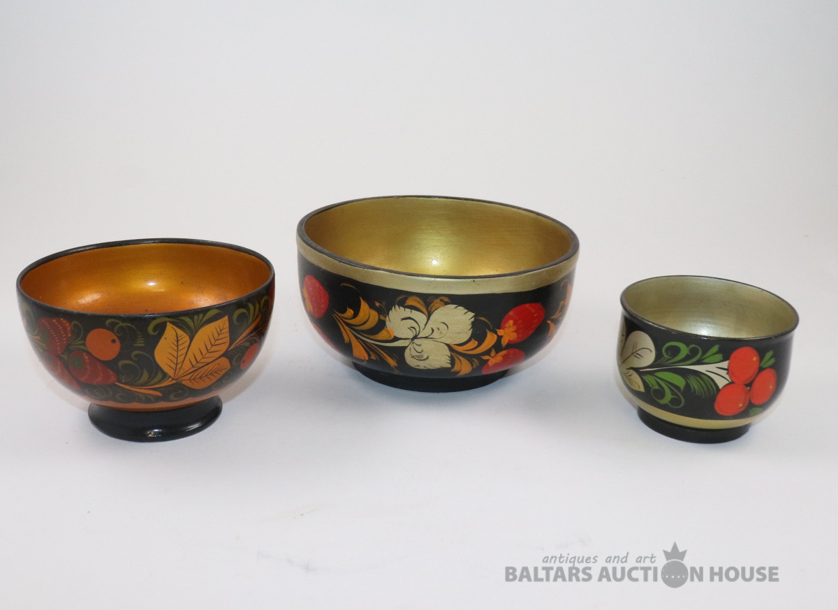 Bļodas 3 gab. Koks, roku gleznojums, laka. h=6., 7., 7,3 cm