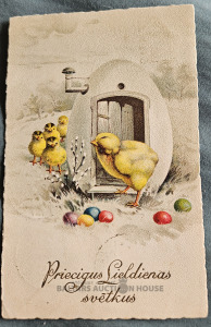 Pastkarte . Priecīgas Lieldienas svētkus.