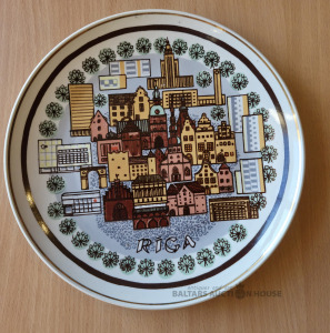 Rīgas porcelāns . Dekoratīvs sienas šķīvis . D - 24,5 cm . Normālā stāvoklī
