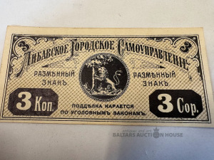 Liepājas pilsētas valdes izdotā 3 kap. banknote 1915.g.