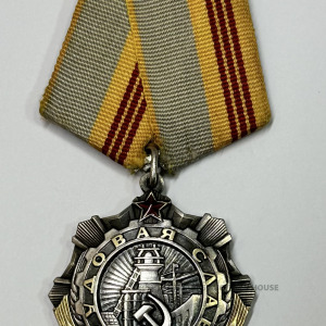 Darba slavas medaļa, sudrabs, emalja, bez defektiem, ļoti labā kondīcijā, kārtas N 585 238, kopējais svars 44 grami, svars bez plankas 35 grami.