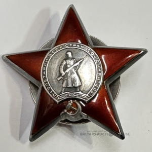 Ordenis SARKANĀ ZVAIGZNE, sudrabs, par militārajiem nopelniem 2.Pasaules kara laikā, neliels kārtas skaitlis 1 125409, gravēts ar štiheli, emalja vesela, pat bez švīkām, patina, svars ap 40 grami, iedibināts 1930.-jā gadā, šis eksemplārs piešķirts aptuveni