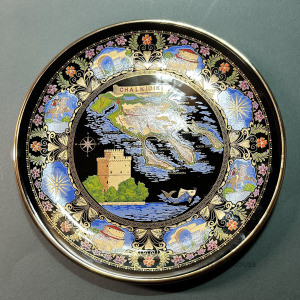 Dekoratīvs šķīvis ar 24K zeltu, roku darbs, Grieķija, diametrs 24 cm, bez lietojuma pazīmēm.