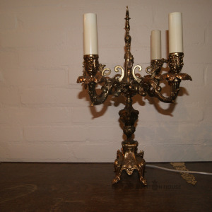 Antīka pieczaru galda lampa – Baroka elegance grezna antīka galda lampa (kandelabru), Lampa ir dekorēta ar Baroka stila lējumiem un kristāla piekariņiem, kas piešķir tai īpašu mirdzumu.