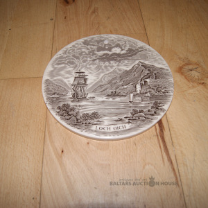 elegants siera vai uzkodu dēlītis servēšanai.autentisks un ļoti skaists fajansa dēlītsi (paliktns) no slavenā angļu ražotāja Enoch Wedgwood mākslas darbs ar vēsturisku Skotijas ainavu – Loch Oich