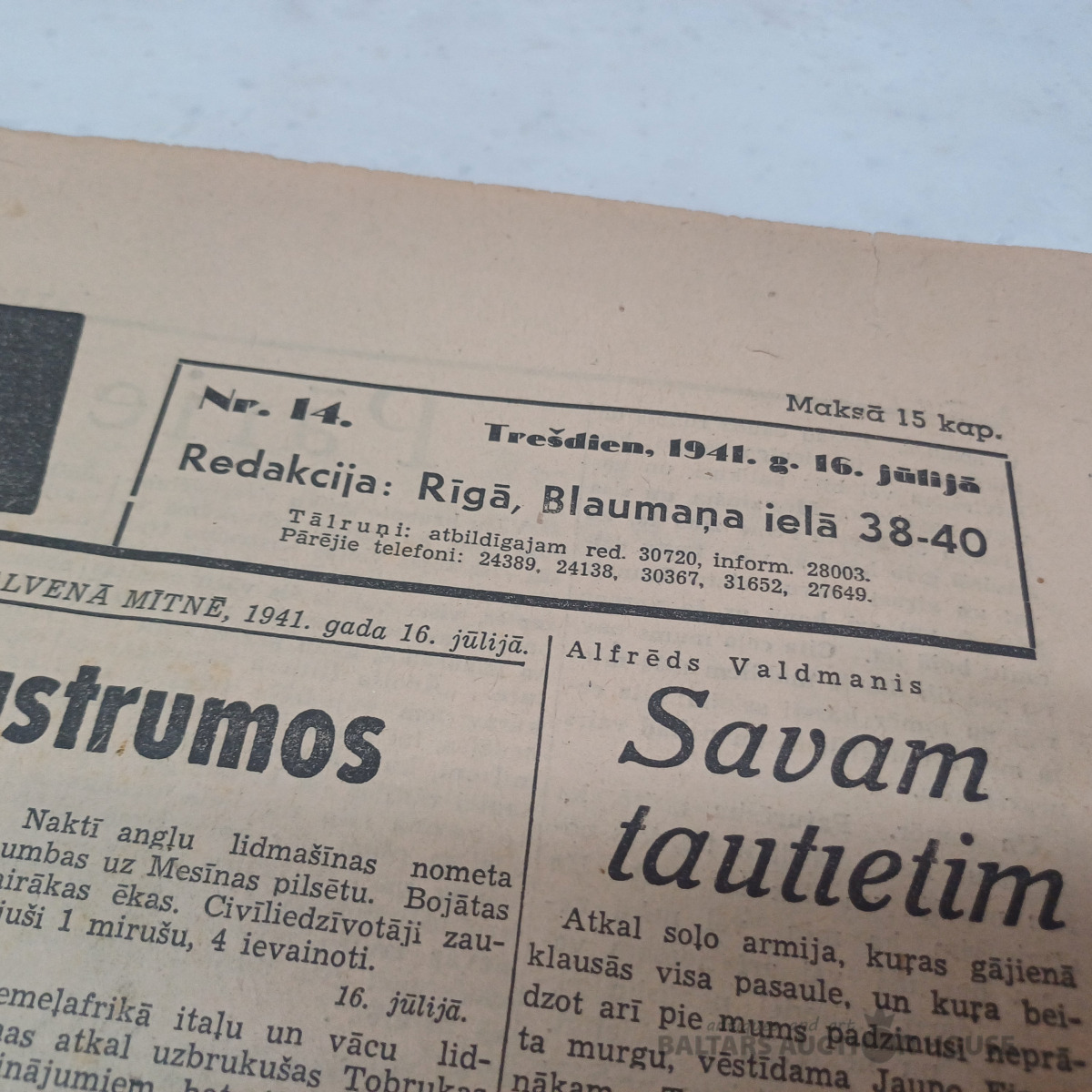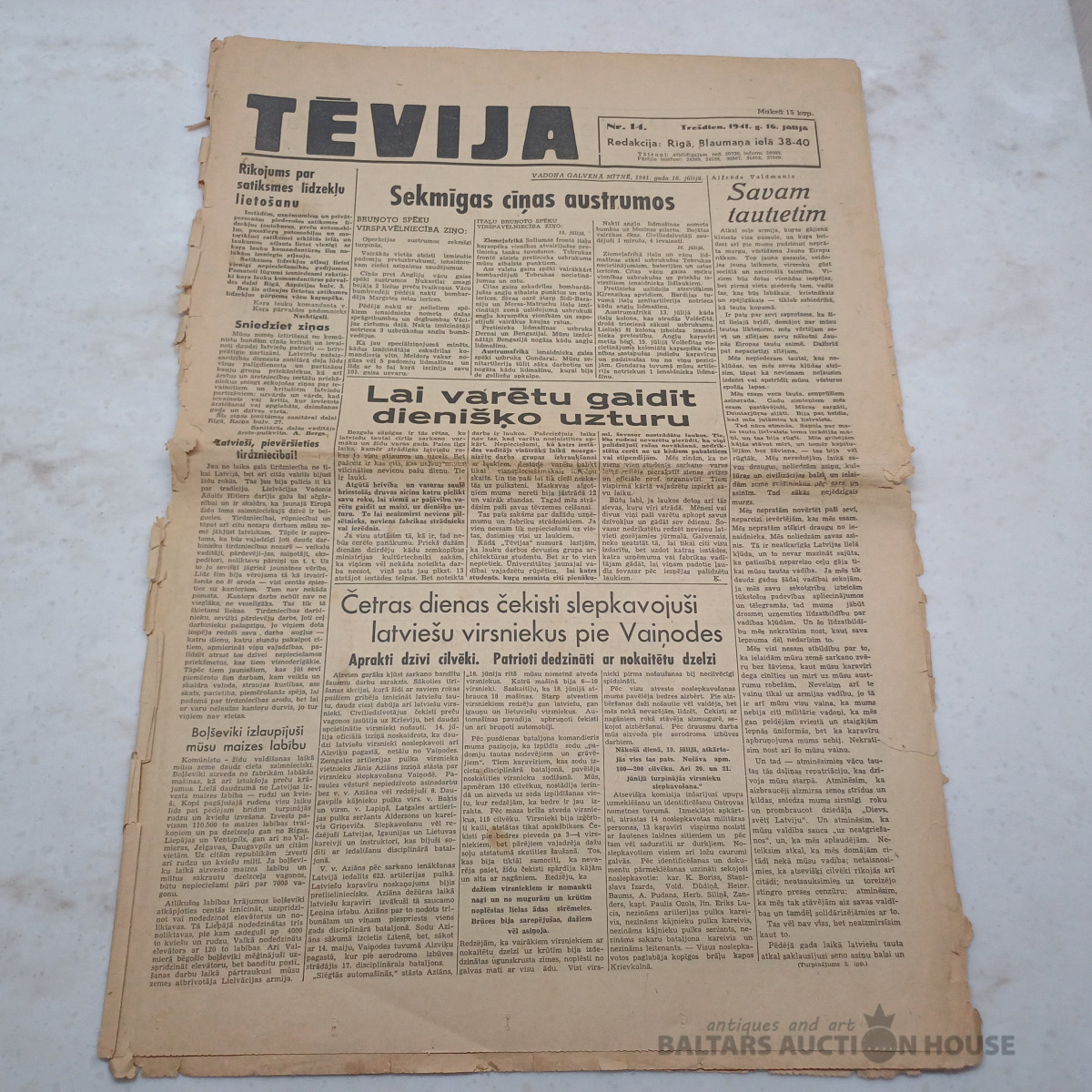 Tēvija – Nacistu propogandas izdevums. 1941/14. Tēmas: Antisemītisms. Čekistu štāba orģijas Launkalnē.