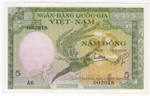 Banknotes, Dienvidvjetnama / Viet-Nam South, 5 Dong 1955, UNC