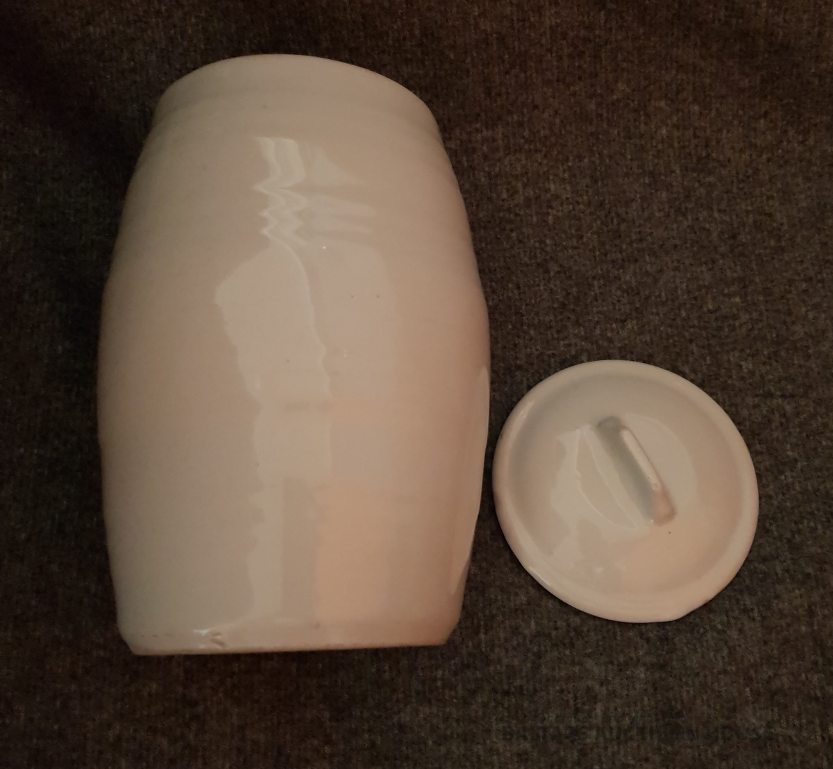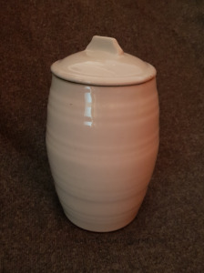 Muciņa 1.5 L. Ar vāciņu. Augstums 18 cm, augšējās un apakšējās daļas diametrs 10 cm.