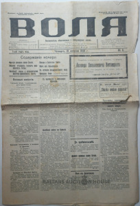 Avīze "Volja". Izdota Rīgā 1920. 19.februārī.
