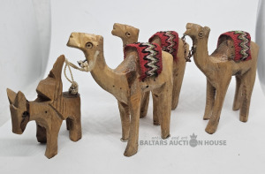 Koka kamieļu karavāna ar vedēju, statuetes. Rokas darbs.
