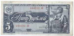 Banknote, Krievija/Russia, 5 Rubļi 1938 XF+/aUNC