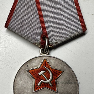 Sudraba medaļa PAR DARBA VARONĪBU, sudrabs 925, PSRS, iedibināta 1938.gada 27.decembrī ar AP prezidija lēmumu, diametrs 34 mm, svars 34.1 grams, vecā misiņa planka, ļoti laba kondīcija , bez iesitumiem un skrāpējumiem, visa emalja vesela. Viena no galvenajām civilajām darba medaļām.