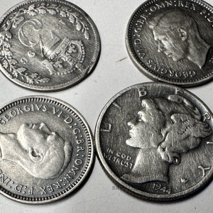 4 sudraba monētas, 1896.g.; 1942.g.; 1943.g.; 1944.g.
