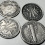 4 sudraba monētas, 1896.g.; 1942.g.; 1943.g.; 1944.g., britu kolonijas, sudrabs, 3 monētas 20.gds sākums, 1 monēta 19.gds. beigas.