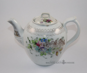 Tējkanna. Porcelāns, roku gleznojums, zeltījums. Kuzņecova fabrika. h=18 cm. Defekti, vāks no cita trauka.