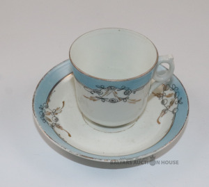 Tase ar apakštasi. Porcelāns, Kuzņecova fab., h=7,2 cm. d=6,8 un 13,3 cm