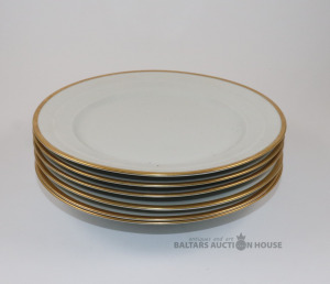 Šķīvji 5 gab. Porcelāns, Kuzņecova fabrika. d=24,5 cm. 1 gab. dziļais - h=3,7 cm. d=25 cm