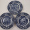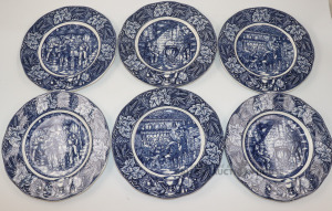 Dekoratīvo šķīvju komplekts ar tradicionāliem vīna un siera gatavošanas sižetiem, izmantojot klasisko zili balto rokas gravējuma tehniku zem glazūras. Fajans. Enoch Wedgwood (Tunstall), Anglija. d=20 cm
