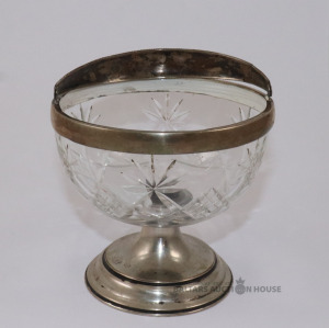 Trauks ar rokturi. Stikls, metāls. h=11 cm, d=12 cm