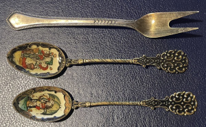 Suvenīrkarotes 2 gb. un dakšiņa no melhiora, l=13 un 14,1 cm