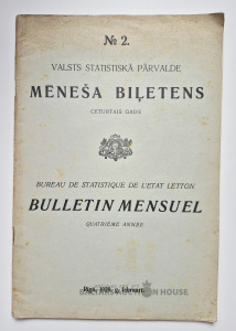 Nosaukums Valsts statistikā pārvalde. Mēneša biļetens Nr.2, Rīgā 1929g.